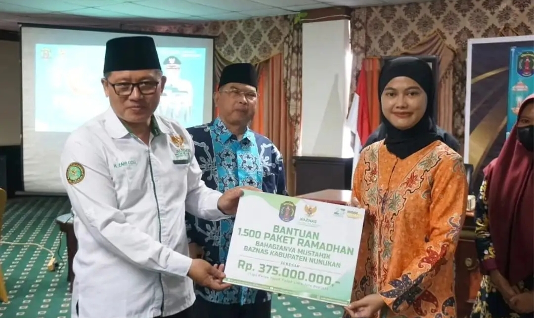 Untuk diketahui, pelaksanaan Nunukan Berzakat kali ini, Baznas Kabupaten Nunukan menyerahkan secara simbolis Bantuan 1.500 paket Ramadhan Bahagianya Mustahik Baznas Kabupaten Nunukan Kepada Bupati, Hj. Asmin Laura Hafid sebesar Rp. 375.000.000,- dan penyerahan paket Ramadhan kepada para Honorer di Nunukan”. (***/ Prokompim).