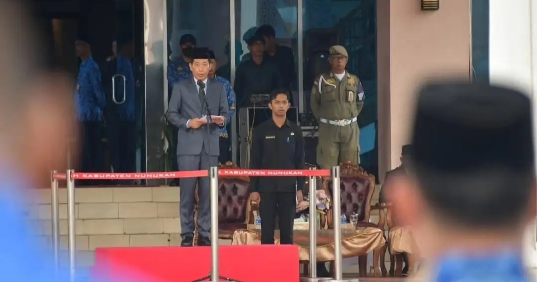 Upacara yang dipimpin oleh Sekretaris Daerah Kabupaten Nunukan, Serfianus, dilaksanakan di halaman Kantor Bupati Nunukan dihadiri Unsur Forkopimda, Asisten Administrasi Umum, Drs. Syafarudin, serta Kepala OPD dilingkungan Pemerintah Kabupaten Nunukan.