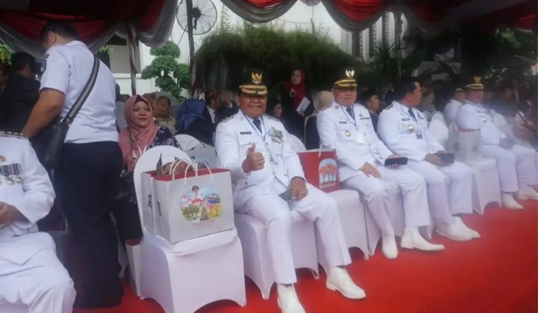 Wakil Bupati Nunukan, H. Hanafiah, SE, M.Si tampak hadir duduk di tenda kehormatan bersama para bupati dan walikota seluruh Indonesia.