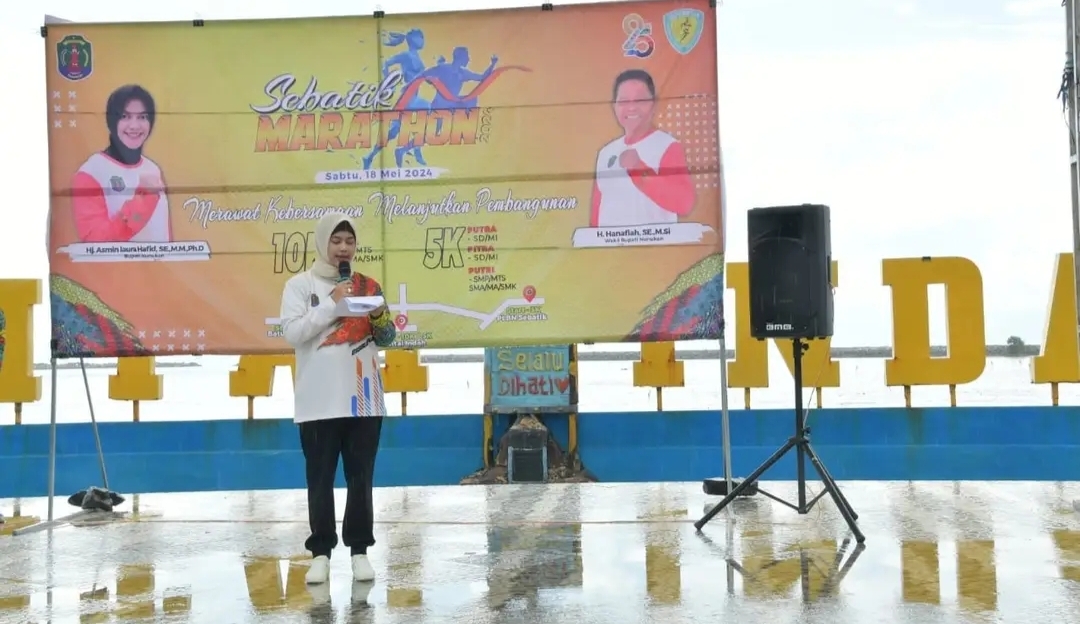 Nunukan,(Bacabah.com)-Bupati Nunukan, Hj. Asmin Laura Hafid membuka rangkaian kegiatan Hari Ulang Tahun (HUT) Kabupaten Nunukan yang ke 25 Tahun 2024, diawali kegiatan lari marathon tingkat pelajar di Kecamatan Sebatik, yang dilaksanakan di pantai indah desa Tanjung Aru, kecamatan Sebatik Timur, Sabtu (18/05/2024).