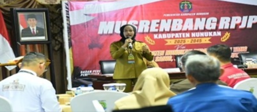 Nunukan,(Bacabah.com)-Bupati Nunukan, Hj. Asmin Laura Hafid Memaparkan Penyusunan Rancangan Pembangunan Jangka Panjang Daerah (RPJPD) tahun 2025 – 2045 dalam visi Kabupaten Nunukan beranda NKRI yang berdaya saing maju dan berkelanjutan, yang di laksanakan di ruang pertemuan Lantai IV Kantor Bupati, Selasa (28/05).