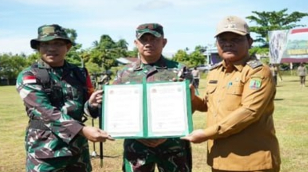 Pada kesempatan ini juga di laksanakan Penandatanganan Penyerahan hasil kegiatan TMMD wiltas oleh Wakil Bupati Nunukan dan Kodim 0911/Nnk yang di saksikan langsung oleh Komandan Korem 092/Maharajalila, Brigjen TNI Adek Chandra Kurniawan,S.I.P,.M.Han.