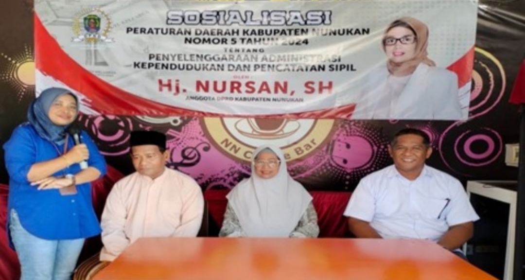 Dalam kesempatan tersebut, Anggota DPRD Nunukan Hj. Nursan, SH politisi Partia Gerakan Indonesia Raya (Gerindra) menyampaikan sosialisasi Payung Hukum Daerah tentang Administrasi Kependudukan dan Catatan Sipil, Pencabutan biaya administrasi merupakan bagian dari upaya pemerintah terhadap akses masyarakat terkait layanan administrasi Kependudukan.