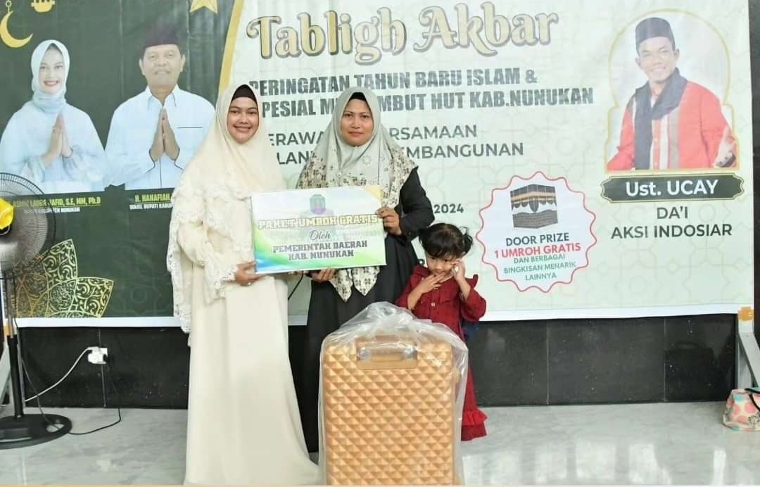 Dalam sambutan tertulisnya, Bupati Nunukan Hj. Asmin Laura Hafid menyampaikan melalui momentum Tabliq Akbar ini, Bupati mengajak kepada kita semua agar tetap tegar tidak boleh menyerah, semakin kompak, makin rukun, dan makin bersatu.