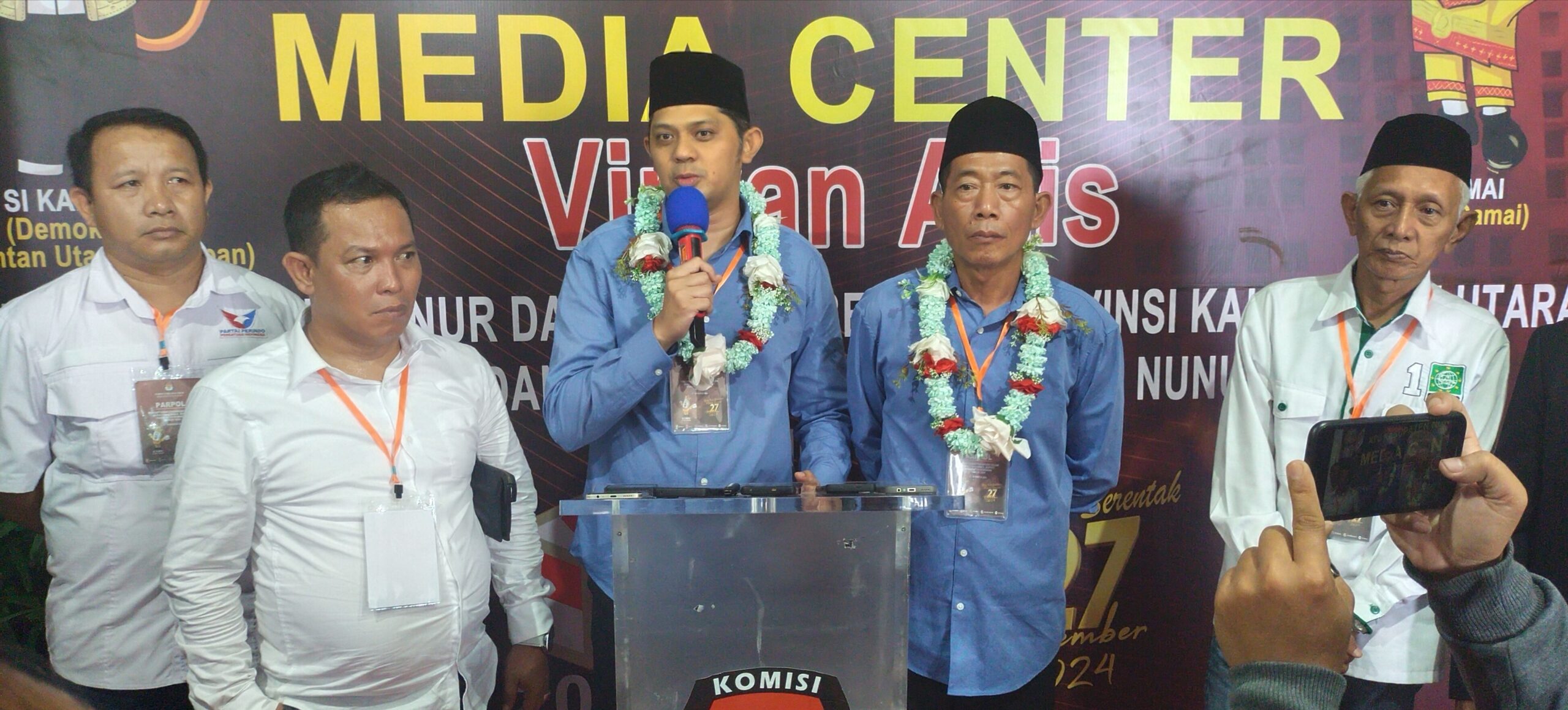 Dalam konferensi pers, pasangan H. Andi Akbar M. Djuazah – Serfianus menyampaikan, “Alhamdulillah kami bisa menyerahkan berkas pendaftaran. Saya ucapkan terima kasih kepada masyarakat yang turut mengantar kami mendaftar ke KPU.