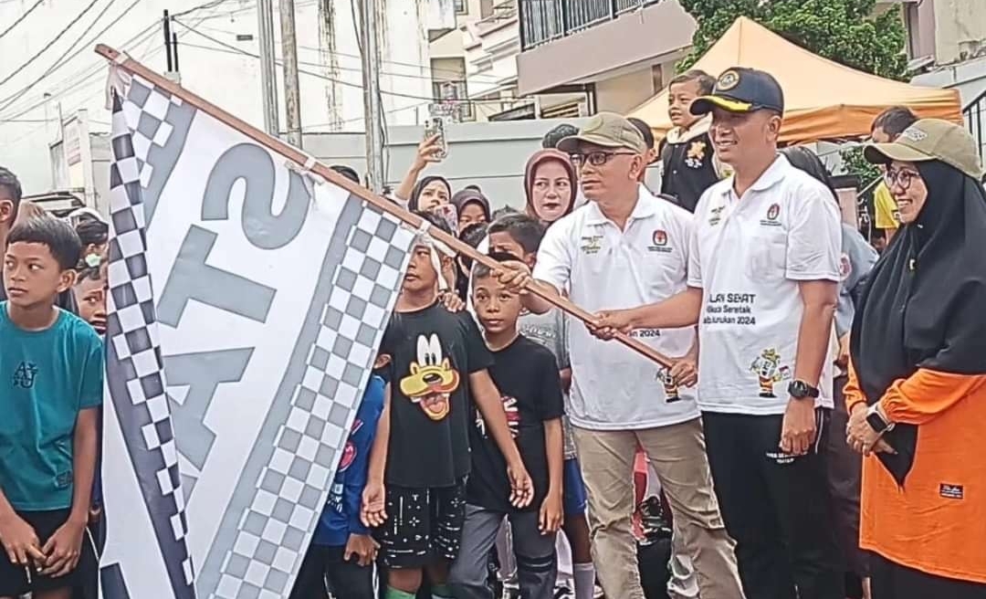 Nunukan,(Bacabah.com)-Mewakili Bupati Nunukan, Kepala Badan Kesatuan Bangsa dan Politik (Kesbangpol) Nunukan, Hasan Basri melepas ratusan peserta jalan sehat dalam rangka menuju Pilkada serentak tahun 2024, di Alun Alun kota Nunukan depan BNI, Minggu (06/10)
