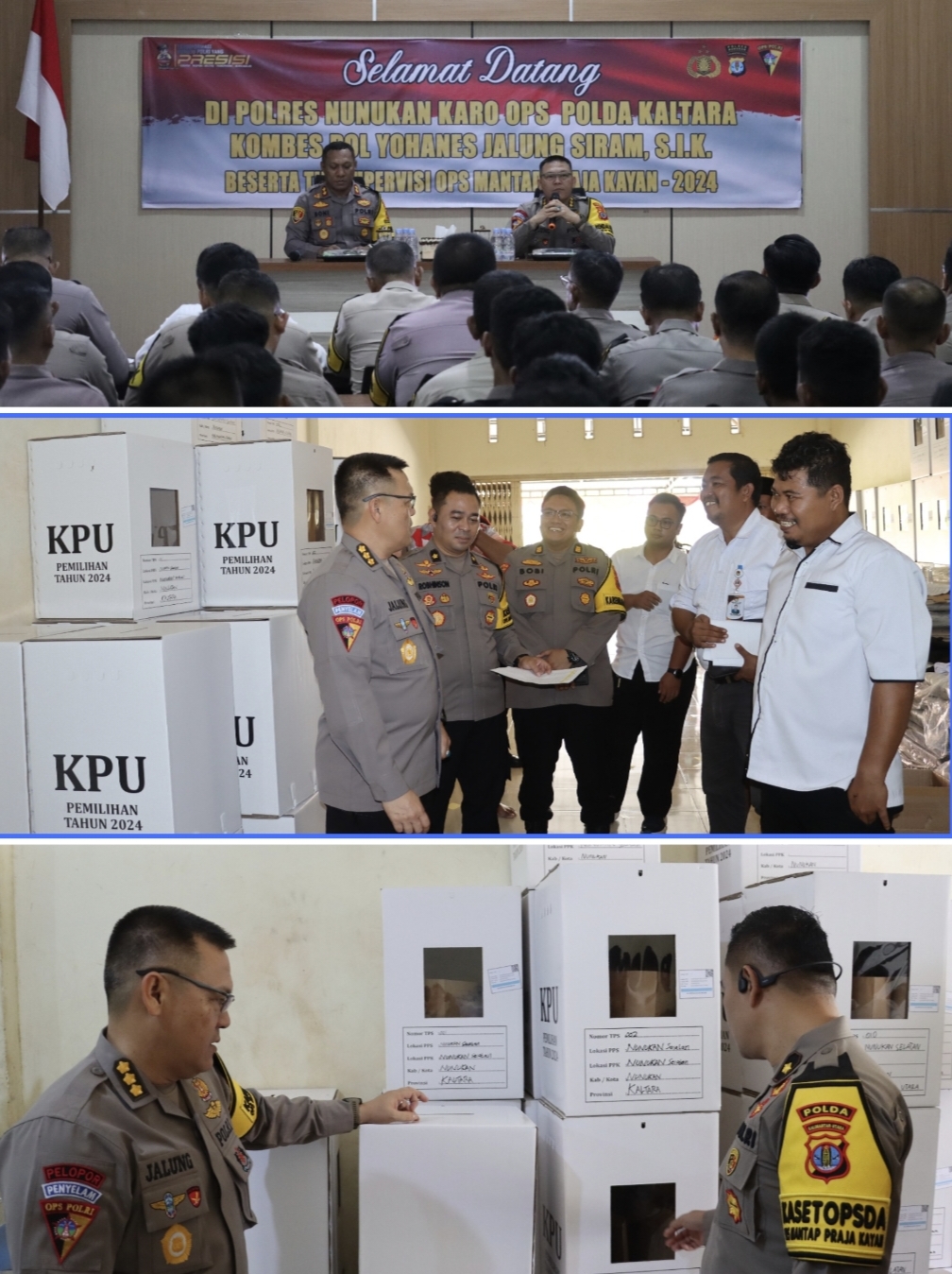 Setelah memberikan pengarahan, Karo Ops bersama tim melakukan pengecekan langsung ke beberapa fasilitas yang terkait dengan Pemilu, antara lain Kantor KPU Nunukan, Bawaslu Nunukan, serta gudang logistik Pemilu.