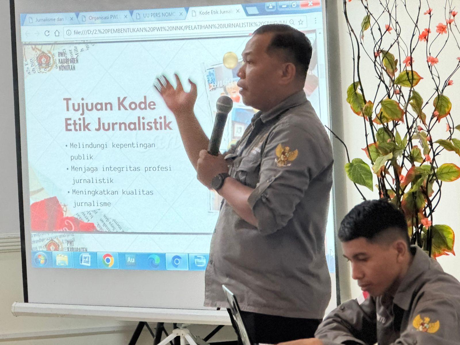 OKK ke-II PWI Nunukan menghadirkan tiga narasumber dengan materi meliputi, sejarah organisasi PWI, Kode Etik Jurnalistik (KEJ) dan Undang-Undang Pokok Pers Nomor 40/1999. (**/adm).