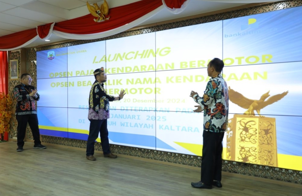 TANJUNG SELOR,(Bacabah.com)-Mewakili Gubernur Kalimantan Utara (Kaltara), Dr. H. Zainal A. Paliwang SH, M.Hum., Asisten Bidang Administrasi Umum Setda Kaltara, Pollymaart Sijabat, SKM.,M.AP, secara resmi membuka “Soft Launching Pelaksanaan Opsen Pajak Kendaraan Bermotor (PKB) dan Opsen Bea Balik Nama Kendaraan Bermotor (BBNKB)”, di Gedung Gabungan Dinas (Gadis) Kaltara, Jumat (20/12).