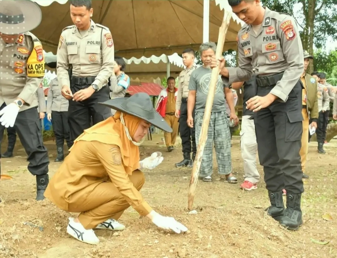Bupati Nunukan Hj Asmin Laura Hafid bersama Forkopimda, Ketua DPRD melakukan tanam jagung jenis bibit Talenta di atas lahan 2 Hektar yang berada di jalan Mangga Kelurahan Selisun, Selasa 21 Januari 2025.