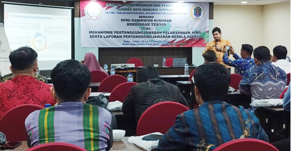 Jakarta,(Bacabah.com)-upaya memperkuat fungsi pengawasan terhadap penggunaan Anggaran Pendapatan dan Belanja Daerah (APBD), Dewan Perwakilan Rakyat Daerah (DPRD) Kabupaten Nunukan melaksanakan bimbingan teknis (bimtek) tentang mekanisme pertanggungjawaban pelaksanaan APBD dan Laporan Pertanggungjawaban Kepala Daerah pada, Rabu (12/2/25) di Jakarta.