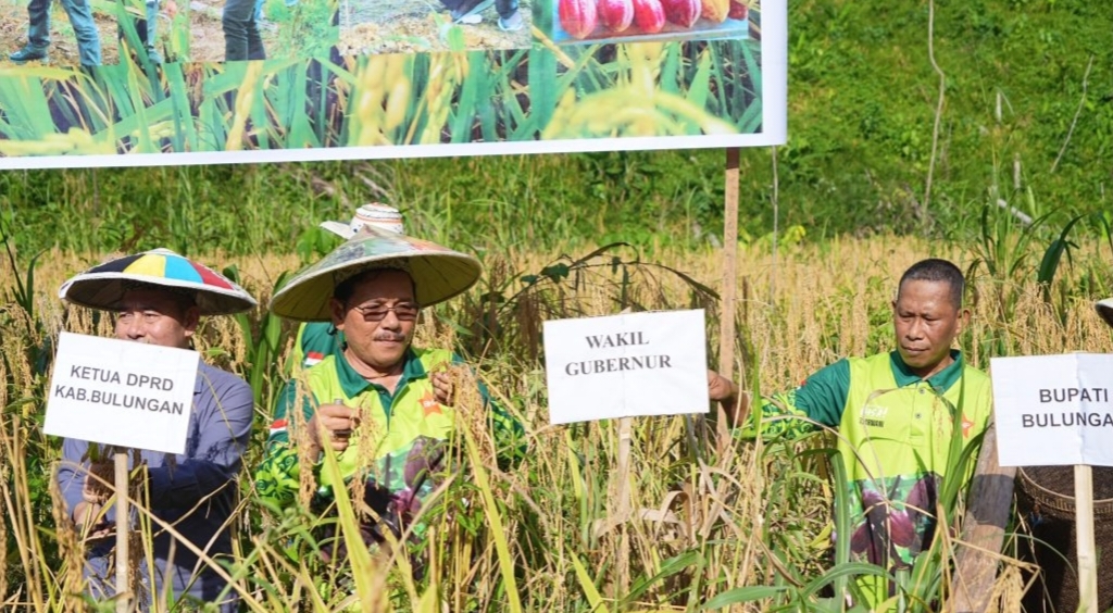 BULUNGAN,(Bacabah.com)-Wakil Gubernur (Wagub) Kalimantan Utara (Kaltara) Ingkong Ala, S.E., M.Si bersama Bupati Bulungan Syarwani, S.Pd., M.Si dan Forkopimda melaksanakan kegiatan Panen Padi Gogo di Lahan Perkebunan Desa Pejalin, Kecamatan Tanjung Palas, Rabu (9/4/25).