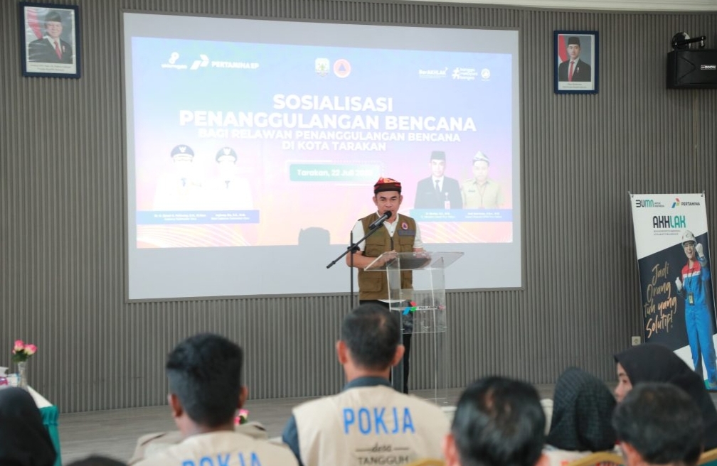 TARAKAN,(Bacabah.com)-Pemerintah Provinsi (Pemprov) Kalimantan Utara (Kaltara) melalui Badan Penanggulangan Bencana Daerah (BPBD) Kaltara melaksanakan kegiatan “Sosialisasi Penanggulangan Bencana bagi Relawan Penanggulangan Bencana” digelar di gedung pertemuan mess Melati EP Pertamina Tarakan, Selasa (22/07).