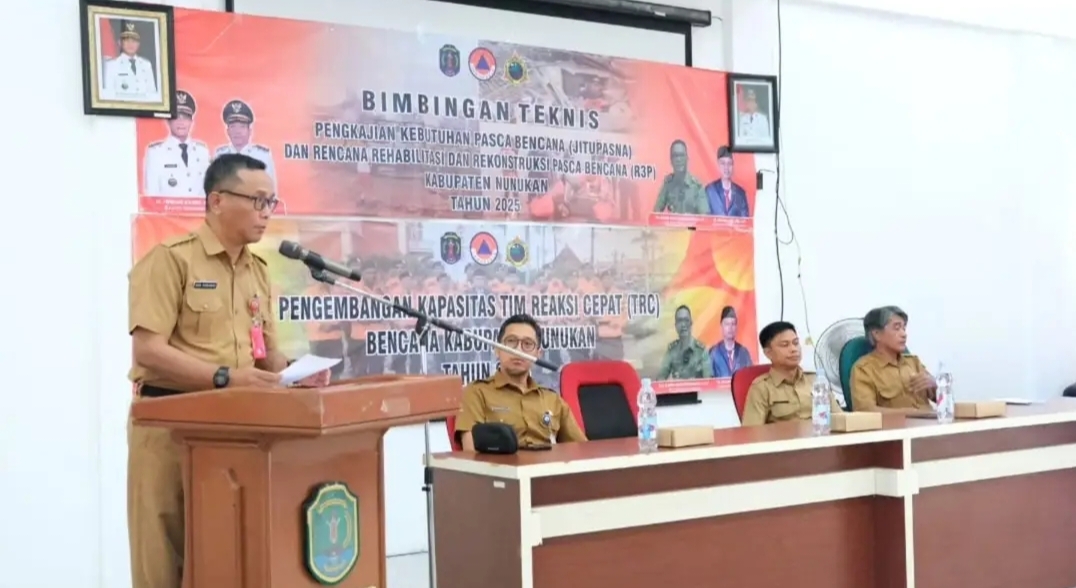 Nunukan,(Bacabah.com)-Plt Sekretaris Daerah (Sekda) Kabupaten Nunukan, Raden Iwan Kurniawan membuka Bimbingan Teknis (Bimtek) BPBD terkait Pengkajian Kebutuhan Pasca Bencana (Jitupasna), Rencana Rehabilitasi dan Rekonstruksi Pasca Bencana (R3P), serta Penguatan Kapasitas Tim Reaksi Cepat (TRC) Kabupaten Nunukan.