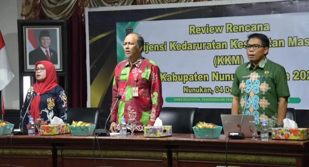 Nunukan,(Bacabah.com)-Mewakili Bupati Nunukan, H. Irwan Sabri, Asisten Pemerintahan dan Kesra, Muhammad Amin menghadiri acara review rencana Kontijensi Kedaruratan Kesehatan Masyarakat (KKM) Kabupaten Nunukan yang digelar oleh Dinas Kesehatan, Pengendalian Penduduk dan KB di Ruang Rapat VIP lantai IV Kantor Bupati Nunukan, Kamis (04/12).