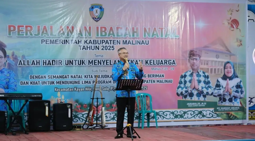 Malinau,(Bacabah.com)-Bupati Malinau, Wempi W. Mawa., SE., MH bersama rombongan FKPD dan OPD Kabupaten Malinau hadiri Perayaan Natal Pemerintah Daerah Kabupaten Malinau bersama Masyarakat di Desa Long Sule dan Desa Long Pipa, Kecamatan Kayan Hilir, jumat (05/12/25).