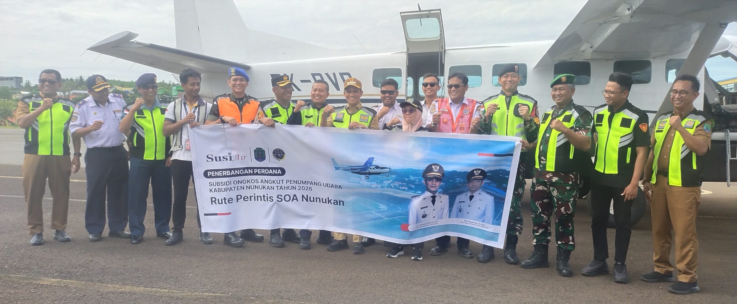 Nunukan,(Bacabah.com)-Bupati Nunukan, H.Irwan Sabri, SE melaunching penerbangan perdana Subsidi Ongkos Angkut (SOA) penumpang pesawat Susi Air rute Nunukan- Long Bawan dan Nunukan – Binuang tahun 2026, Selasa (6/1/26).