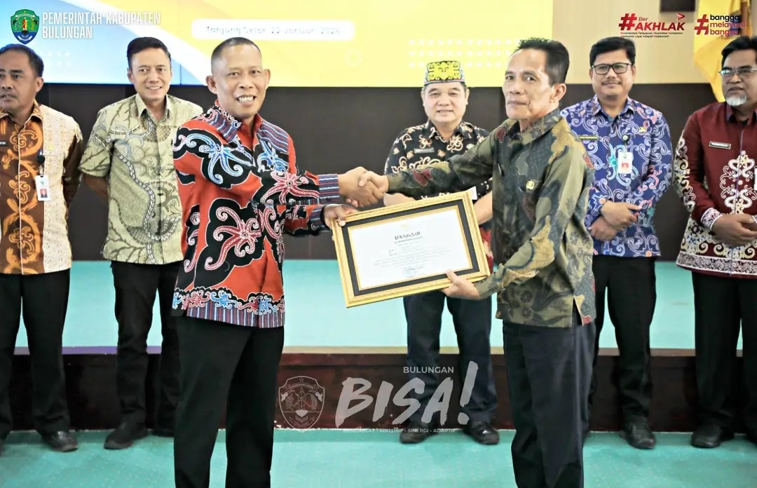 Bulungan,(Bacabah.com)-Bupati Bulungan, Syarwani, S.Pd, M.Si menyerahkan SK pemberhentian dan piagam penghargaan kepada 109 PNS Pemkab yang memasuki Batas Usia Pensiun (BUP) di tahun 2026 pada Kamis (22/1/2026) di Aula BKPSDM Bulungan di Jl Agathis, Tanjung Selor.