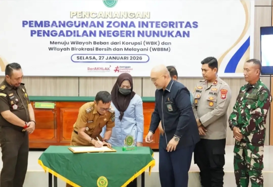 Nunukan,(Bacabah.com)-Pengadilan Negeri Nunukan menggelar Pencanangan Zona Integritas Menuju Wilayah Bebas Korupsi (WBK) dan Wilayah Birokrasi Bersih dan Melayani (WBBM) yang bertempat di Kantor Pengadilan Negeri Nunukan, Selasa, 27/01/2026.